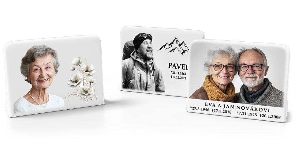 Tradiční typ porcelánu do hřbitovní vitríny.